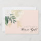 Ett leende på ett litet ansikte med den här söt blomflickan frieri kort med en fet kaskadande bukett av vit och gräddfärgad ro, med grönt löv och en sprinkling av guld faux glitter. Teckensnittet stil med handbokstäver paras med modernt sans serif-teckensnitt i mörk grått. Bakgrunden är i fast rosa och motsatsen är i mörk. Anpassa med namnen.