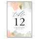 Snyggt, moderna bordsnummer med rosa och dammiga färgformer av grönt med ytfolie i guld med geometriska accenter som gränsar till överkanten och grund på kortet. Ord "bord" visas i ett kalligrafiskt skript för elegant med bordsnumret, namn och bröllop som visas nedan. Utformningen upprepas på baksidan av kortet. Designad för att samordna med vår Rosa & Sage Grönt Watercolor bröllop-samling.