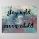Ett citat där det står "stanna vild måne barn" i svart mot blekens rosa och röntgenblå grunge fullt måne bakgrund, utsmyckad med en söt rosa rullverk snurrande.