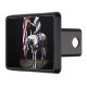 Ett fantastiskt foto av cowgirl på en palomino & white Paint Horse som höll den amerikanska Flagga under nationalhymnen vid Ormön Stampede 2014.