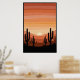 Värm och lugn med detta minimalistiska ökenlandskap med terracotta och kontra gradienter parade med fet svart cactus silhouettes. Mimik i struktur som är papper för en naturlig känsla, perfekt för dem som söker varm silhuettkonst i öknen, jordisk minimalistisk dekoration och texturerade avtryck från solnedgångsmuren.