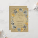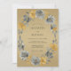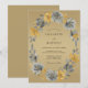 Denna eleganta design har en rustik krans bestående av dämpade senapsfärgade och grå blommor och bladverk. Konsten frammanar en sofistikerad men charmig stämning, perfekt för en minnesvärd tillställning.