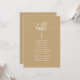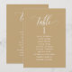 Hjälp dina gäster att hitta sitt bord med dessa eleganta moderna sittplanskort med gästernas namn. Dubbelsidiga kort så att gästerna kan leta från både framsida och baksida efter sina namn. Tydligt utrymme runt omkring ger dig friheten att använda klämmor eller hålslag för upphängningsdisplayer, eller använd hållare/ram för bord. Gul Tan-bakgrund och vit text. Moderna handskrivna kalligrafidetaljer. Flera färgalternativ. Ha alla bordnummer i samma färg eller blanda färger enligt ditt events färgtema.