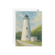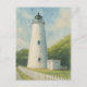 Den här serene vattenfärgen fångar Ocracoke-fyrkens tidlösa skönhet, North Carolinas äldsta operativa fyr. Dess glekande vita papper står på ett skoningslöst sätt emot ett mjukt himmel som är förtjust i sol och som utstrålar en känsla av fredlig varaktig styrka. En klassisk vit betesstaket leder öga längs en viltlevande strandpromenad som leder till fyr och dess lilla, åtföljande vita struktur. Lush grönt träd ger en verdant bakgrund som förbättrar den lugna atmosfären. I biet framhävs på ett vackert sätt den tysta charmen och historiska allturen från Ocracoke Island, en verklig kustskatt.