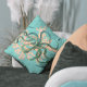 Vattenbakgrund, vattenkorall gren och en grönt-färgad bläckstråle illustrerar ge i dekorativ kudde ett modernt utseende.