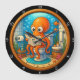 Med den här unika klockan tillför du en viskös på vilket utrymme som helst! Med en charmerande, glad orange bläckfisk sitta på en toalett och läsa en tidning. i ett undervattensbadrum, kompletta med fisk och bubblor. Den här lekklockan är perfekt för badrum, barnrum eller någon som kärlekar lite humor i sin torka. skapar en humoristisk och oväntad vattenbadrumsinställning.