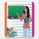 Visitkort. Lärare med den svart tavlan och anteckningsboken. Det finns rum för text. Se andra i denna serie.