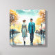 Söt ai vattenfärgsart. En man och kvinna som korsar varandra på London Street brushing händer när de passerar. En romantisk chans att träffas.