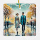 Söt ai vattenfärgsart. En man och kvinna som passerar varandra på gatan och borstar händer när de passerar. En romantisk chans att träffas.