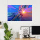 Okänd solnedgång i flytande mark. En mycket färgstark, varm och coola kombination av former och form i abstrakten bild.