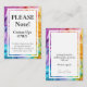 Vi presenterar "Grown-ups Only"-meddelandekortet från "Etheral Bloom Collection", som är ett sofistikerat och konstnärligt sätt att kommunicera exklusiven av bröllop firande. Det här eleganta designade kortet adorberas med samlingens namnteckning, livfulla nyanser, skapar en perfekt som blandar modern konst och finslipad elegans. På framsidan, som ställs mot en meriserande bakgrund av alkoholteckningar i bläck med snurrande blues, lila, , orangar och gröntar, följs den framträdande texten "Observera" av "Endast tillväxt-up", som ger ditt budskap med tydlighet och glädje. Typografin med fet stil och elegant utmärker sig och ser till att budskapet är både tydligt och estetiskt tilltalande. Vänd kortet för att visa en djup, lugnande lila bakgrund som är underligt adorberad med fintvätt av blommigt från "Etheral Bloom Collection". Den här lyxiga arbetsytan ger utrymme för ditt personliga budskap och gör det möjligt för dig att uttrycka uppriktig uppskattning till dina gäster eller viktiga detaljer om din speciella dag. Det här avsnittet ser till att dina gäster känner sig värdefulla och anslutna till firande. Som en del av "Etheral Bloom Collection" är det här anslagskortet helt anpassade, vilket gör att du kan anpassa det så att det återspeglar skönheten och särdragen i din kärlek-historia. Tillkännagivningskortet "endast växlingar" förmedlar inte bara viktig information med elegans utan förbättrar också det övergripande temat och estetik för ditt bröllop-kontor. Med detta kort anger du tonen för en exklusiv och ett oförglömligt firande, fyllt med kärlek, glädje och omhuldade minnen.