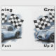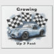 En underbar perfekt för vattenfärgstryck för en bildriven födelsedagsfest i tävling! Med en dammig blå barnvagn i tävling med svart hjul, parad med fet svart och vitt flaggor. Om du ställer in dig mot en dammig blå bakgrund i tävling-spåret, kompletteras designen med den lekande texten "Growing up 2 fast". Idealisk för partiinbjudningar, dekorationer eller keepsakes för att fira din lilla racerfiras speciella dag i stil!