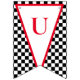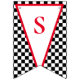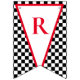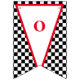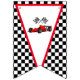 Att växla upp två banderoller med snabb födelsedagsbuntning har en röd bil. Den här söta födelsedagsfesten med biltemat tävling är till för en pojke.