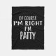Of Course I'm Right, I'm Patty Novelty Humor Fleecefilt