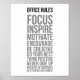 Office Regler Focus Inspire Motivate uppmuntrar Kreativ att göra din bästa Tänka positiv och tro aldrig på att du själv är Rak och ärlig
