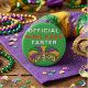 Get ready for Fat Tuesday with this hilarious "Official King Cake Taster" button! This festive design features a colorful cartoon King Cake decorated in traditional purple, green, and gold icing, complete with the iconic plastic baby sitting front and center. It is the perfect accessory for Mardi Gras parades, carnival parties, or for the lucky person who finds the baby in their slice. Whether you are a bakery enthusiast, a NOLA native, or just here for the food, wear this badge with pride this holiday season.