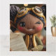En lekfull och rolig ton julbild, en stickad blinkande steampunk-docka. Tom insida-kort