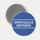 Ord är officiellt pensionerad och skriven med fet stil mot en marin blå bakgrund. Perfekt för att meddela pension.