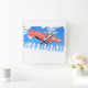 Lustigt, surrealistiskt konstnärligt framträdande med en klassisk bil som flyger genom himlar.