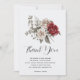 Tack för ett kort med en illustration av blommigten. Vacker grädde och röd ros samlades i en bukett med grått och löv.