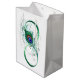 Oändlighetssymbolen med en ljus, grönt, konstnärlig påfågelfjäder på vit bakgrund. Tatto stil.