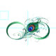 Oändlighetssymbolen med en ljus, grönt, konstnärlig påfågelfjäder på vit bakgrund. Tatto stil.