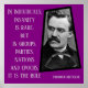Lila med bild av den tyske filosofen Friedrich Nietzsche.Till den lämnat citerar han om oförnuft. "I individer är osanitet sällsynt, men i grupper, party, nationer och epoker är det regel"