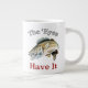 Perfektens fiskedesign för alla glasögonanglar med stort tandögla omgivet av texten "Öga har det". Och det gör de. . . - hårda strider och utsökt ätande.