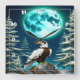 En stor örlgång på gren, som lyfts upp av ett ljust fullt måne, omgiven av snö-täckt träd i ett serene vinterlandskap.