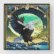 En stor örn står stolt över ett sten, omgivet av ett serenlandskap, med ett glödande måne som tänder nattetid himmel.