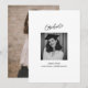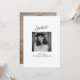 Detta examensbevis har ett fotografi i ögonblicksbildsstil på framsidan med "Examinand" i avslappnad handskriven stil högst upp och examenklassens namn, år och skola i rena versaler nedan. Baksidan har ett andra foto så att du kan visa två av dina favoriter. Det är en ren, återhållsam look som låter fotot tala för sig själv. Lägg till ditt namn, skola och examensår och det är redo att skickas.