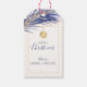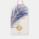 Nautical Boutique Co.'s tropiska Juletiketter har en vattenfärgsformad handflatan träd handflatan-yta som är belägen överst med ett årstidsberoende vattenfärgsskalv som hänger på den. "Merry" och din namn är i modern blockering, och det är parat med vismisk handskriven typografi för "jul". Elegantens marinblått, guld och äckligt elfenben färg påminner om helgdagar på stranden. #Coastaljul #jul #GiftTags