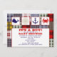 En kallduschinbjudan till havskött barn med illustrationer överst på en val, en sanddollar, ett ankare och en krabba. Bakgrunden på framsidan och baksidan är ett lapptäcke som är inspirerat av ett lapptäcke. Anpassa texten med information om tillfälle.