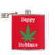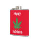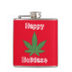 Lycklig Holidaze-kolv vid jul ogräs Löv. Coolans julklapp stor, grönt ogräs löv på röd bakgrund med vit skakig text som lyder: "Lycklig Holidaze". Coolans gåva till höftled.
