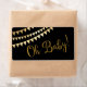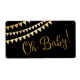Oj, Baby, vattenflaska för babydusch med söt guld och guld glitter Oj Baby på svart bakgrund. De här märkena på vattenflaskan för babyduschen är inte vatten säkra.