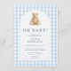 Oh baby bear baby shower invitation featuring a sweet teddy bear design with soft blue gingham details. Created to celebrate your little one with a cozy, classic style that feels warm and inviting. Perfect for baby showers, boy themes, and traditional celebrations. Editable text for easy personalization. Clean, print-ready layout.