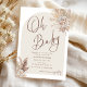 Den här designen har en ljusbeige ljusbåge som bakgrund och skapar en varm och minimal arbetsyta. En fet och elegant "Oj Baby"-tagg visas i mitten, omgiven av mjölkryddgräs, torkade blommigtar och mjuka blommor med neutralt. Perfekt för en chic och ett modernt firande. Den här boho-inspirerade designen blandar rustik charm med tidlös elegans. Kontakta oss om du behöver hjälp med designen via Zazzle-Chatta eller e-post stephanyanddany@gmail.com. Vi kommer att svara inom 12 timmar.