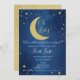 Celestial Måne-babyduschinbjudan att anmäla din nya ankomst med måne & stjärnor, i flottan och guld.