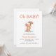 This cute baby shower invitation features a watercolor axolotl holding an umbrella in the rain, below the words "Oh BABY!" in orange hand printing font. Personalize the text with the name of the mom-to-be in orange and the details in charcoal gray sans serif font. The reverse side provides space for diaper raffle, books for baby, and registry details, along with a convenient QR code guests can scan to visit the registry.