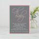 En sofistikerad babyduschinbjudan för att välkomna ett flicka, den här designen har ett vackert skript och en rik grått-bakgrund intill baby rosa. Redigera med duschinformationen genom att ersätta exempeltexten som visas i designmallen.