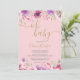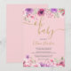 Med vackra rosa och lila blomsterkransar som ramar in din baby shower, sprinkle eller couples shower-detaljer på en krispig vit bakgrund. Baksidan har en vacker rosa bakgrund. Designad av Thisisnotme©