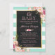 Oh Baby Shower Rosa Blommigt Mint Grönt Rand Inbjudningar