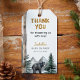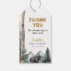 Lägg till en sista touch på dina babyshower-favoriter med dessa trä-äventyrs-tema-etiketter. Med en svart björn, björkträd och akvarellberg, passar designen vackert med den matchande inbjudan och festdekorationerna. Personifiera med ditt namn och datum för en minnesetiket som gästerna kommer att älska.
