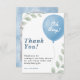 This photo eucalyptus baby shower thank you card is ideal for parents-to-be seeking a blend of natural beauty, contemporary design, and a personal touch to express their appreciation. The soothing greenery offers a calming backdrop, while the pops of blue balloons add a festive and celebratory touch, making your chosen photo truly shine. This design is perfect for themes ranging from modern botanical to rustic charm, ensuring your thank-you notes perfectly complete your stationery suite.