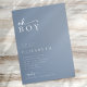Oh Boy Blue Minimalist Script Baby Shower Inbjudningar