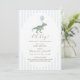 Celebrate your little boy’s arrival with this adorable dinosaur baby shower invitation featuring a watercolor green T-rex wearing a party hat and holding a blue balloon. The soft blue and black striped background adds a modern and playful touch. Perfect for dino-themed baby showers or “a little boy is hatching soon” celebrations. Customize all wording to fit your event details and create a memorable keepsake for guests.