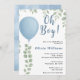 Oh Boy Eucalyptus Blue Balloon Baby Shower Inbjudningar
