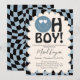 Oh Boy! Modern Groovy Blue Happy Face Baby Shower Inbjudningar