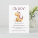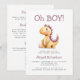 Den här söta babyduschinbjudan innehåller en orange och lila vattenfärgsdinosauer under orden "Oh BOY!" i lila handtryckningsteckensnitt. Anpassa texten till namn i mamma till lila och detaljerna i tecknade grått sans serif-teckensnitt. På baksidan finns utrymme för blöjraffel, bokar för baby och registerinformation, tillsammans med ett bekvämt QR-kodgäster som kan söka igenom registret. Perfekt för en pojkes babydusch.
