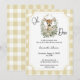 Featuring soft watercolor woodland animals, light yellow gingham details and warm neutral tones.